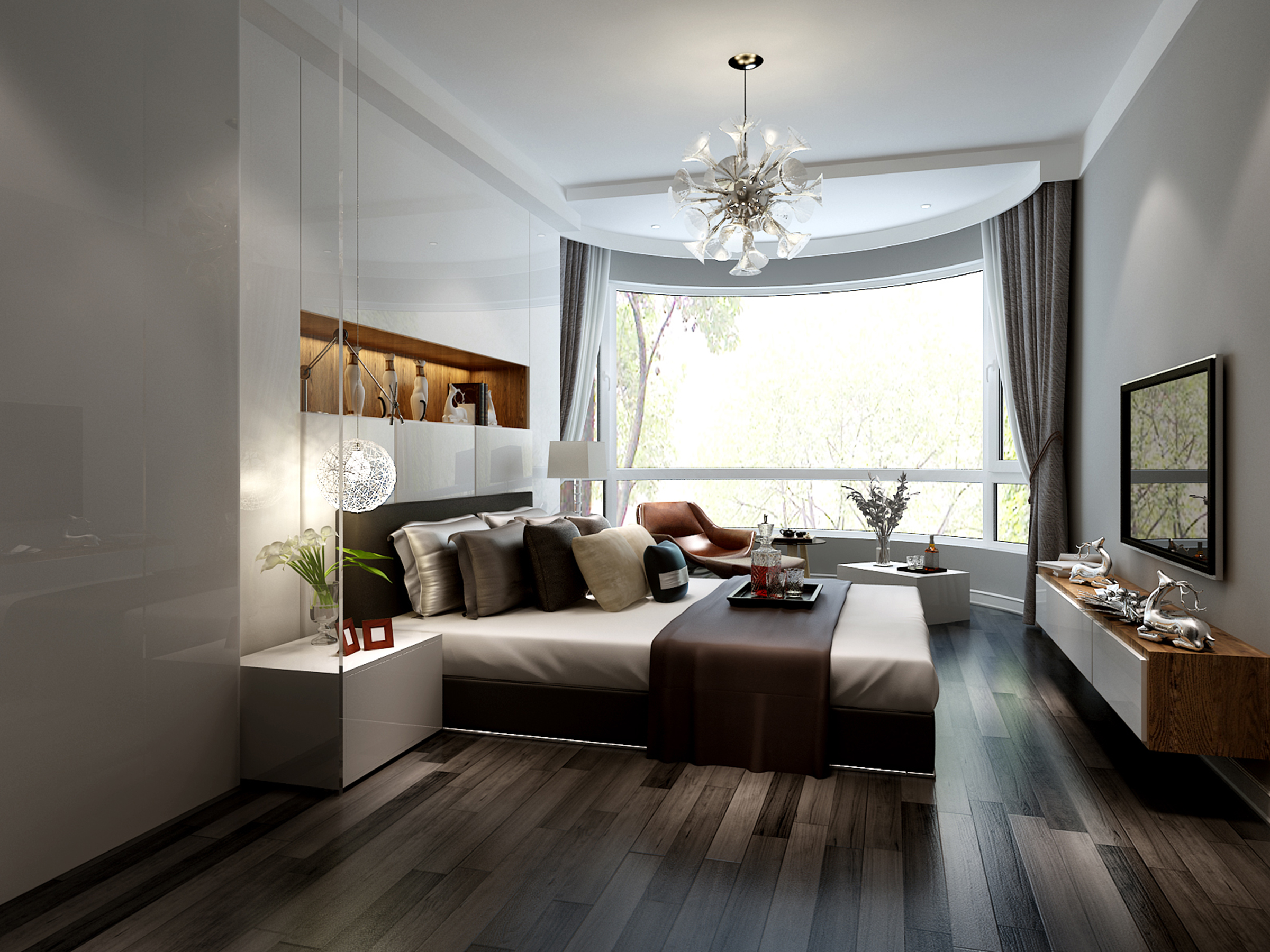 本案以簡潔明快的現(xiàn)代風(fēng)格為設(shè)計主調(diào),以簡潔、實用、經(jīng)濟(jì)和舒適為現(xiàn)代風(fēng)格的基本出發(fā)點。利用一切可以利用的有效空間。 在設(shè)計過程中采用了線條的變化與延伸,同時使用了兩種不同顏色的墻漆,從而使背景墻得到延伸,突出整個客廳空間的通暢明亮。 生活空間聯(lián)系著生活的每個細(xì)節(jié),對于生活空間,每個人的理解不盡相同,如同人的性格存在差異,耐人尋味的空間會有不同的表情。