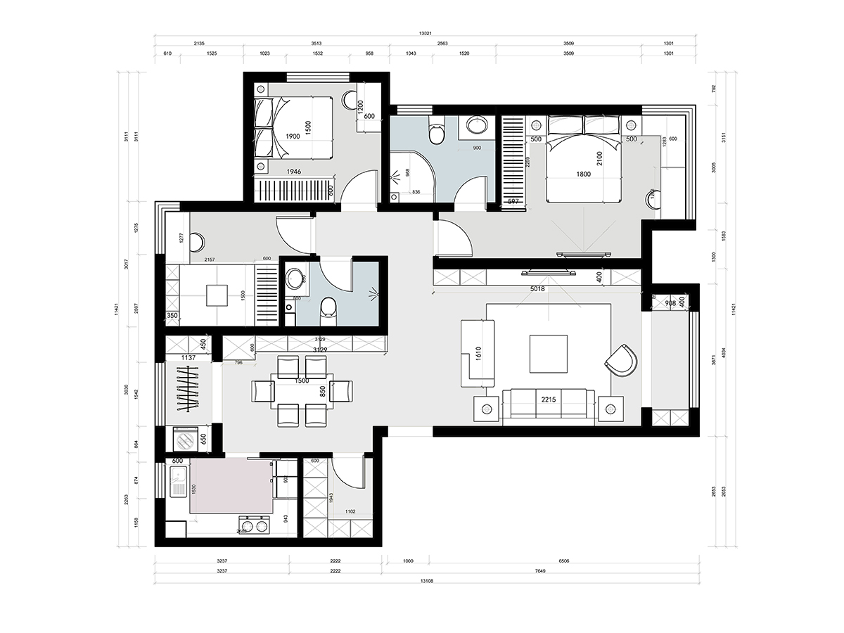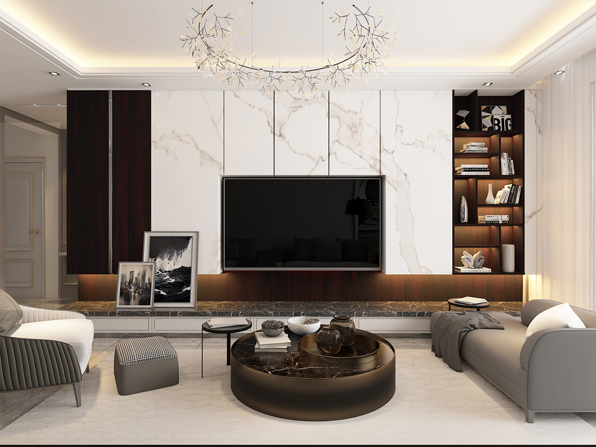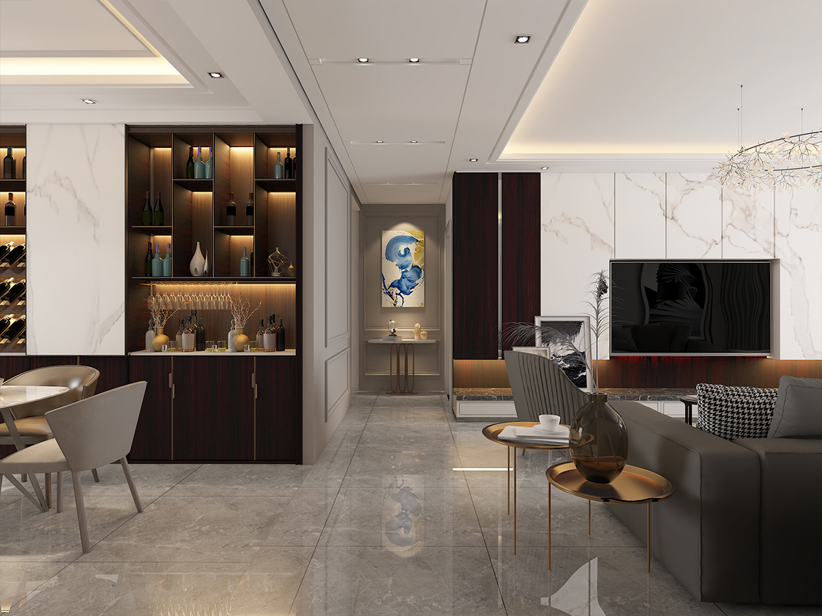現(xiàn)代的黑白灰,給人沉寂的感覺。在繁華的都市生活中讓人的心靈上得到更好的慰藉。本案在色彩上采用無彩色為主,以黑白灰為主色。在光與影的體感中尋找空間的層次感