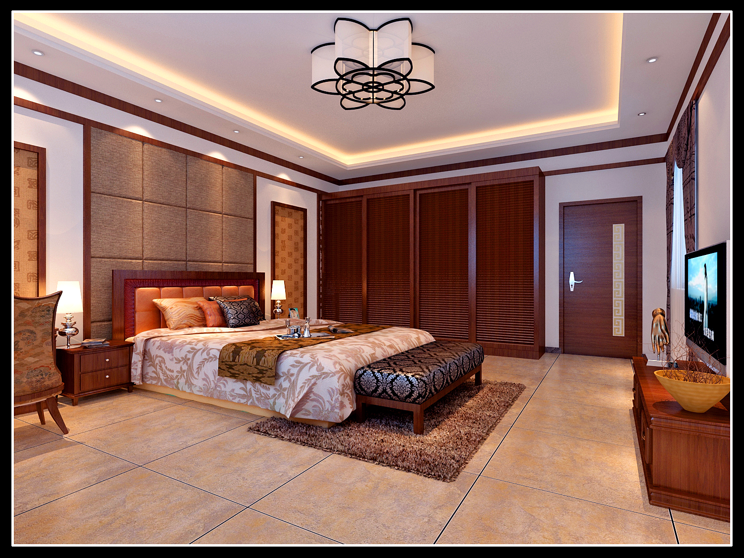 色彩應(yīng)以統(tǒng)一、和諧、淡雅為宜,對局部的原色搭配應(yīng)慎重,穩(wěn)重的色調(diào)較受歡迎,本例主要運用到木材質(zhì),張顯簡樸大方之氣。歐式臥室有的不只是豪華大氣.