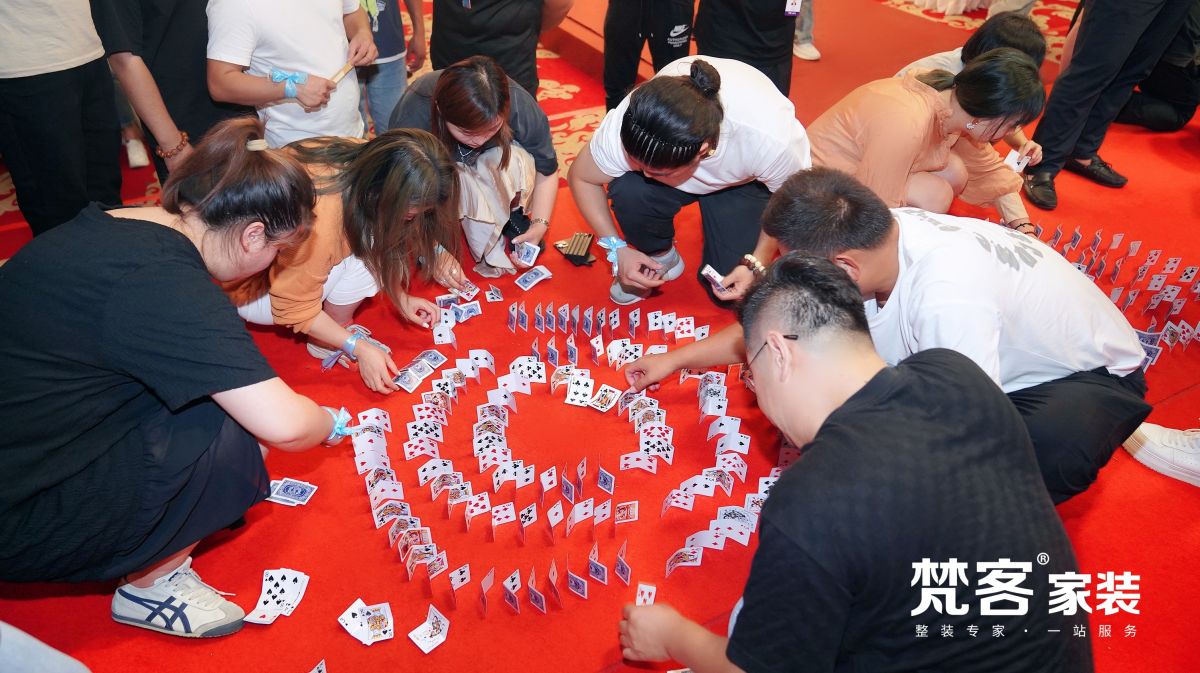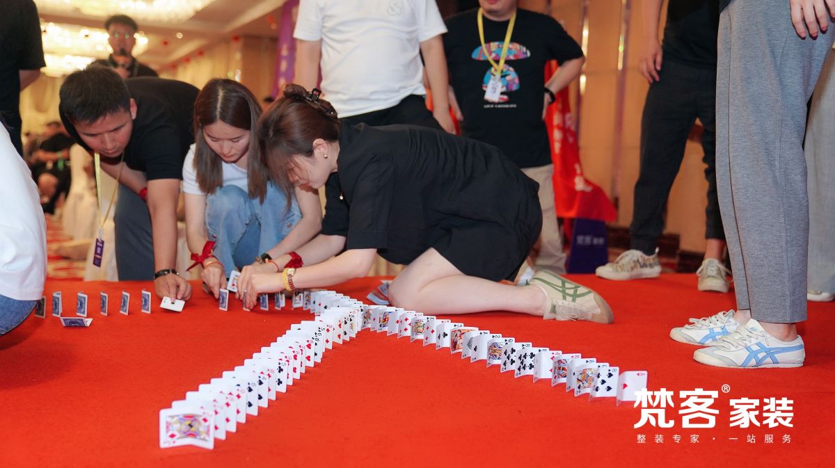 第二個項目是紙牌多米諾,這里更需要智慧,以及心態的平穩和冷靜的性格。紙牌多米諾存在于一個相互聯系的系統,驚動一張紙牌,會產生一系列連鎖反應,由此導致失敗。參賽者還要極度地細心,對注意力、專注度、耐心都有較高要求。梵客家裝的小伙伴們依然不負眾望,取得了優異的成績。