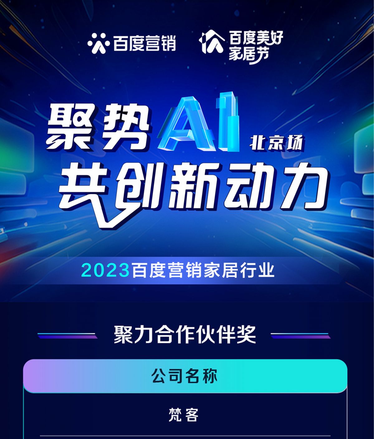 梵客家裝榮膺2023百度營銷家居行業(yè)“聚力合作伙伴獎(jiǎng)”