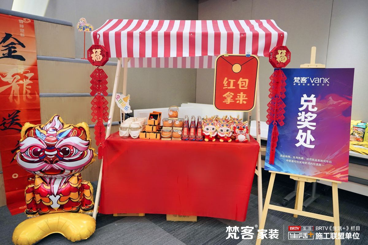 先逛逛生日集市,這里吃喝玩樂一應俱全,濃墨重彩一筆紅,寓意事業(yè)欣欣向榮、公司業(yè)績長虹。甜品上還插著公司為壽星寶寶精心準備的漫畫貼,還有福氣多多、財神爺保你龍年行大運。在梵客家裝,生日也要過得閃閃發(fā)光。