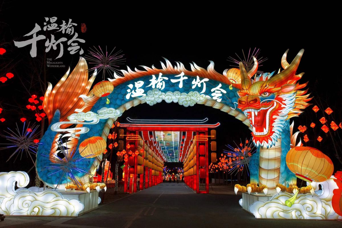 溫榆千燈會(huì)以中國傳統(tǒng)文化元素為支點(diǎn),設(shè)置“新春祈福”、“祥龍賀歲”、“溫榆神話”、“魔幻時(shí)空”、“浩渺星際”、“奇藝叢林”六大主題區(qū)域,展出11組大型燈組、154組中型燈組、261組小型燈組,包含氛圍燈在內(nèi)超過千組彩燈,規(guī)模震撼。彩燈經(jīng)多道工序打磨,飽含非遺工藝匠人匠心,通過“形、色、聲、光”,將燈會(huì)的傳統(tǒng)年味、國潮文化、未來科技完美呈現(xiàn)。