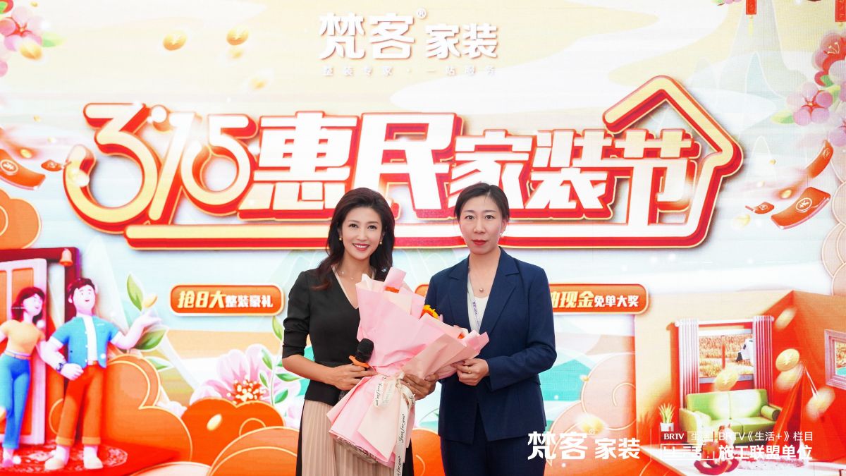 共同的信念成就了四年的牽手,梵客家裝17年專心打磨一件事,只為讓京城百姓裝修沒煩惱。此刻,兩位女神手捧鮮花,親切合影,定格了美好一幕。