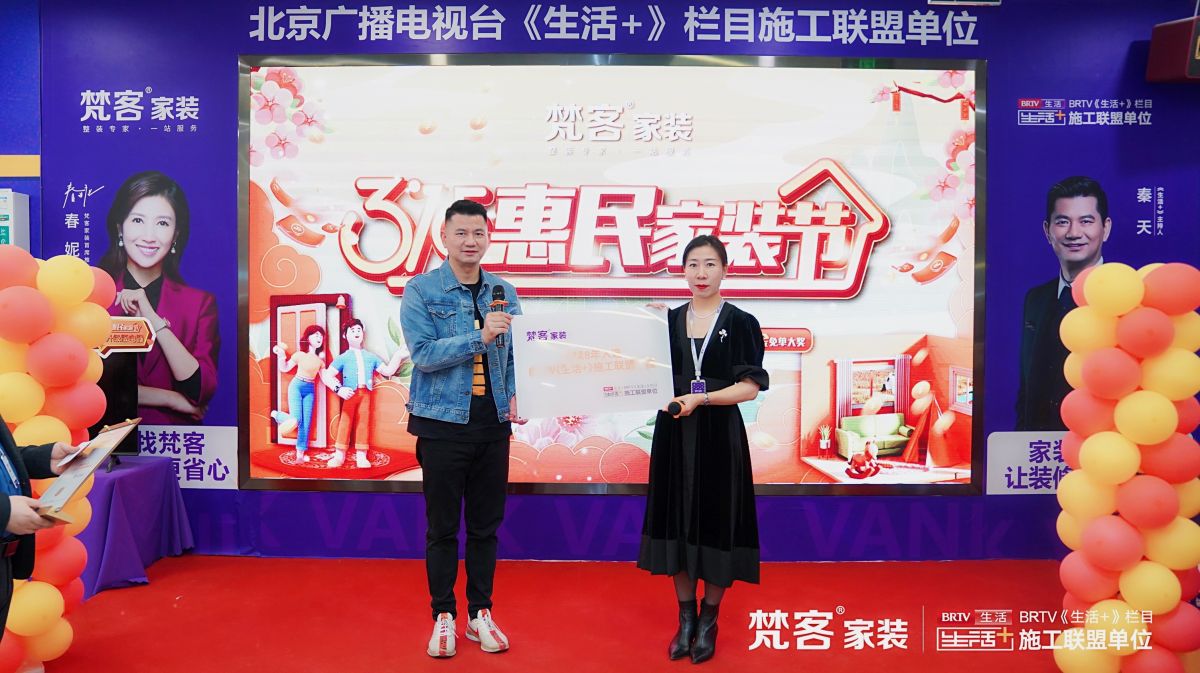 梵客集團副總裁、梵客家裝總經理任琳女士與北京廣播電視臺《生活+》欄目主持人秦天老師,一起為大家展示了這一殊榮。