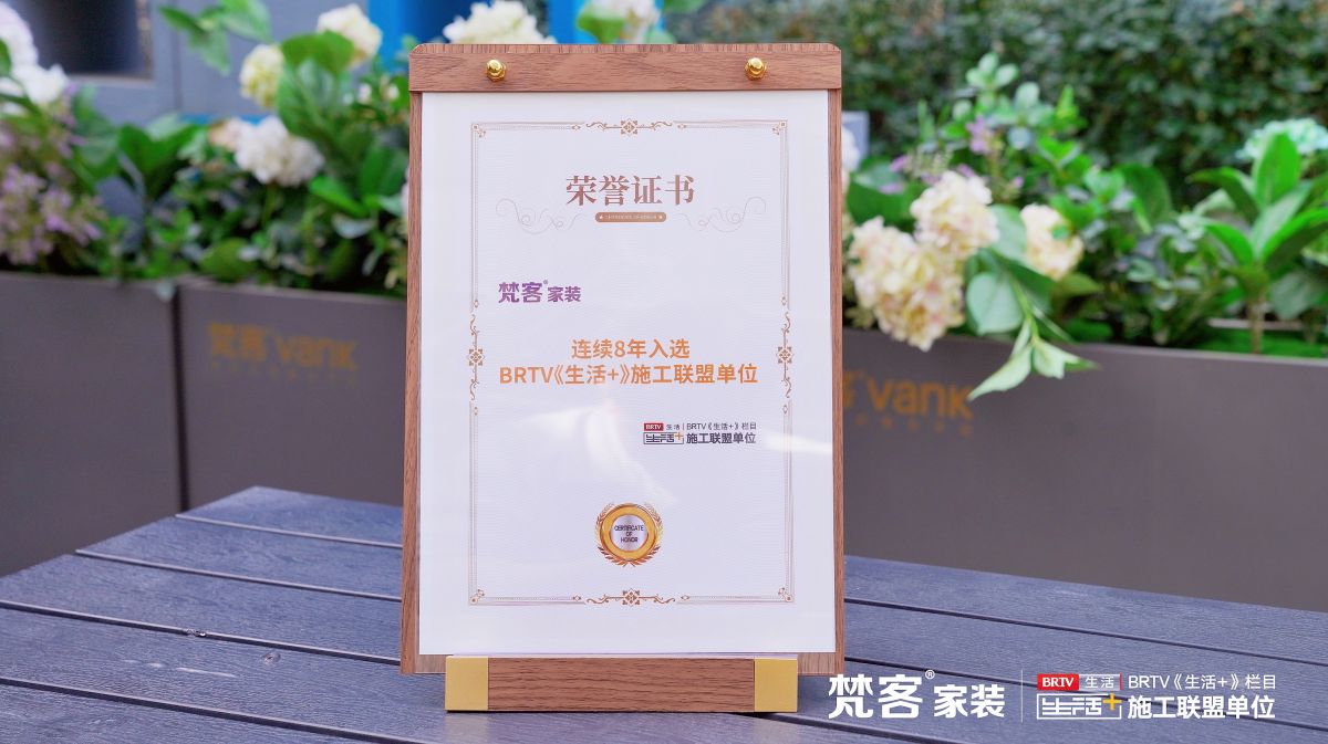 梵客家裝連續8年入選北京廣播電視臺《生活+》施工聯盟單位。為了規范裝修市場,北京廣播電視臺《生活+》欄目專門成立了施工聯盟,為京城老百姓選靠譜裝修公司把關。梵客家裝通過層層篩選、年年考核,一直以來都是其施工聯盟單位之一,其數據、口碑及企業實力等名列前茅。