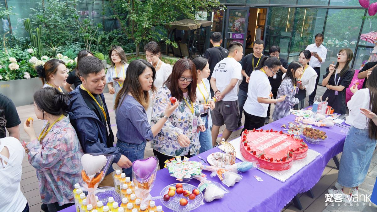 定制的生日蛋糕格外甜美,松香軟糯、入口即化。紅色如赤忱之情,愛心形狀寓意深刻,是企業與員工之間的心心相連。公司為員工提供優越的工作條件,員工在梵客的大舞臺展翅翱翔、不負眾望。