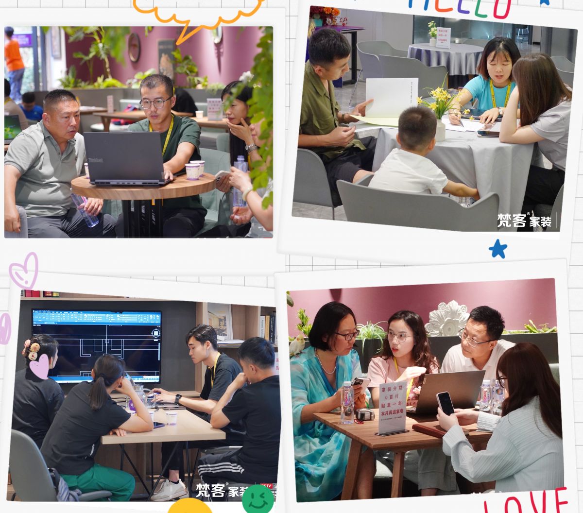洽談區(qū),設(shè)計師正在和業(yè)主交流方案,新家的打造離不開專業(yè)設(shè)計師的全程服務(wù),從方案出爐到材料選擇,從水電交底到家具進場,每一步都需要專業(yè)人士來把關(guān)。一直以來,梵客家裝都在大量引進人才,培訓(xùn)上崗,為業(yè)主裝修新家助力。