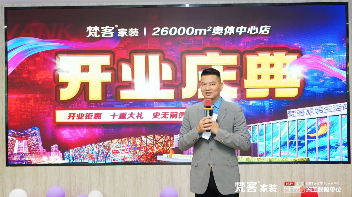 “感謝一路走來支持梵客的行業領導、合作伙伴,以及所有的梵客家人們,因為有大家的支持,才有梵客的今天!梵客家裝從最早600㎡的規模,發展到今天十里河店20000㎡、奧體中心店26000㎡,雖有不易,但依然保持著飛速前行。尤其是奧體中心店,我們花了很大心血打造,其核心作品就是七宅一生實景樣板間,以人生七個生活階段的家為樣本,帶來不同階段的生活體驗。還有梵客家裝特別打造的德標整裝5.0工藝實景展示區,在這里可以了解施工工藝標準…梵客家裝26000㎡奧體中心店的開業預示梵客發展的新篇章,我們也會為業主朋友帶來更好的服務體驗,謝謝大家!”