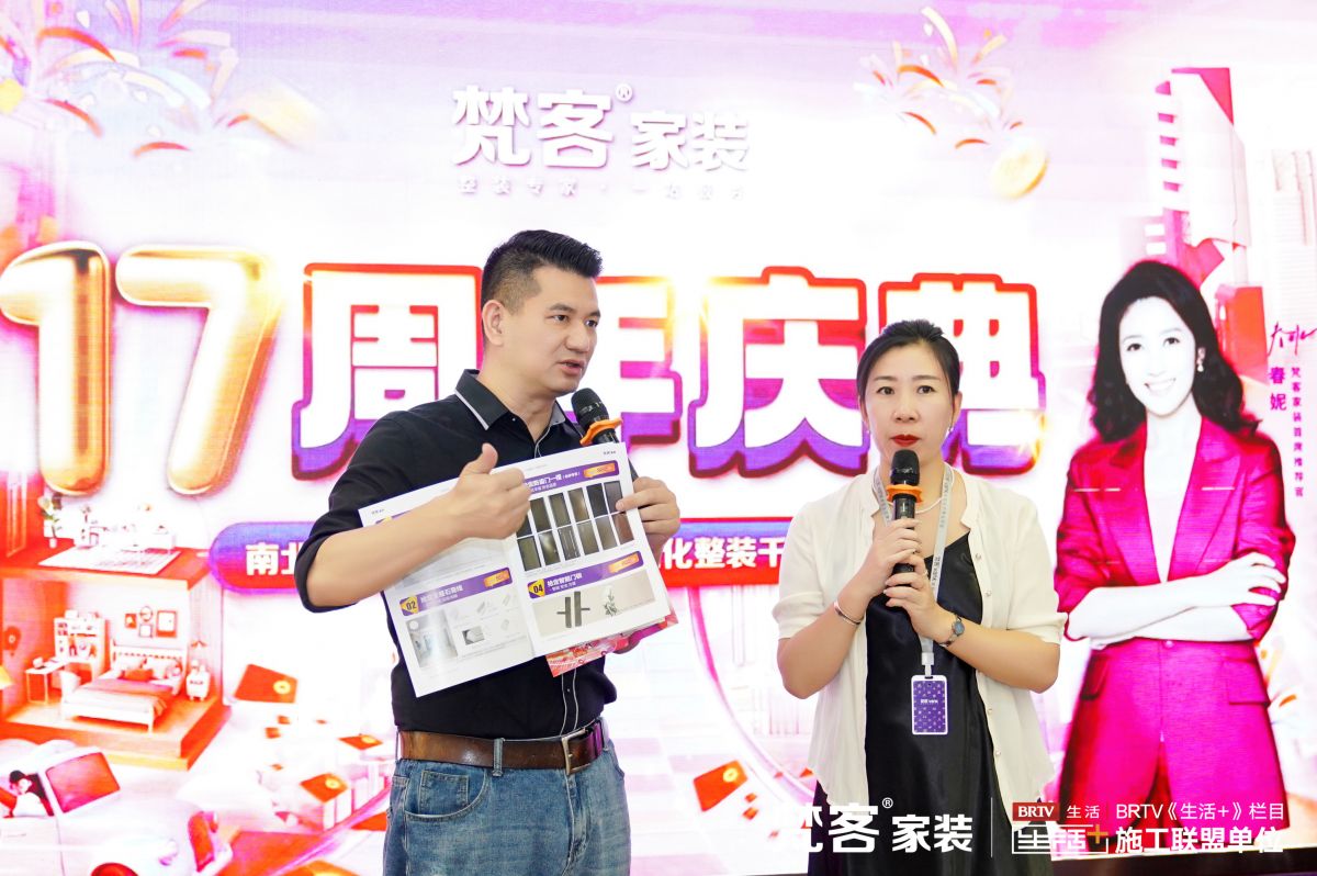 北京廣播電視臺《生活+》節目主持人秦天老師也送上《生活+》施工聯盟協議,為業主裝修多了一層保障。梵客家裝連續八年都是其施工聯盟單位、指定施工單位,這份榮譽是每年通過層層篩選獲得的,不僅彰顯了企業實力,更是對服務、口碑的認可。