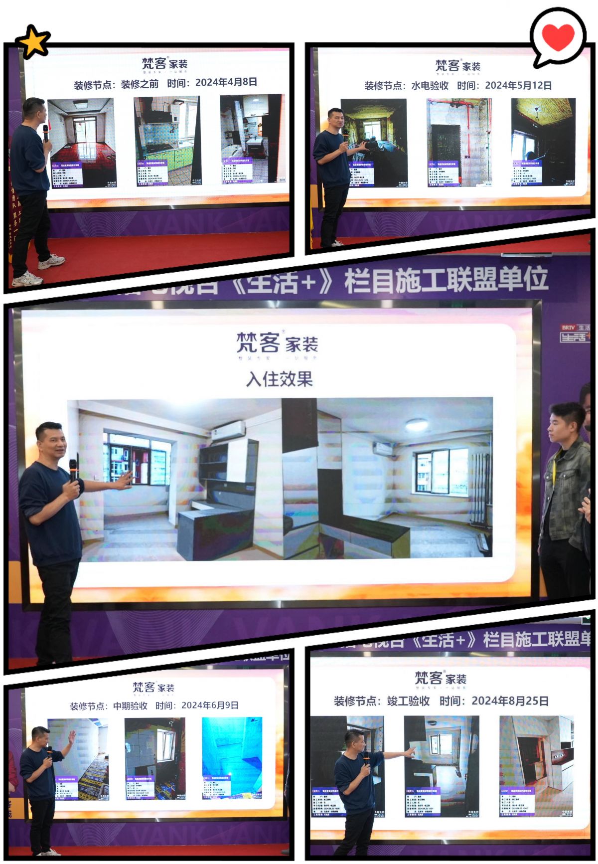 活動現場,秦天老師還為大家播放并講解了施工全過程,從裝修前到水電驗收、中期驗收、竣工驗收直至最后入住,讓現場的業主朋友對梵客的裝修流程、施工工藝、套餐選擇等有了更明確的認識。