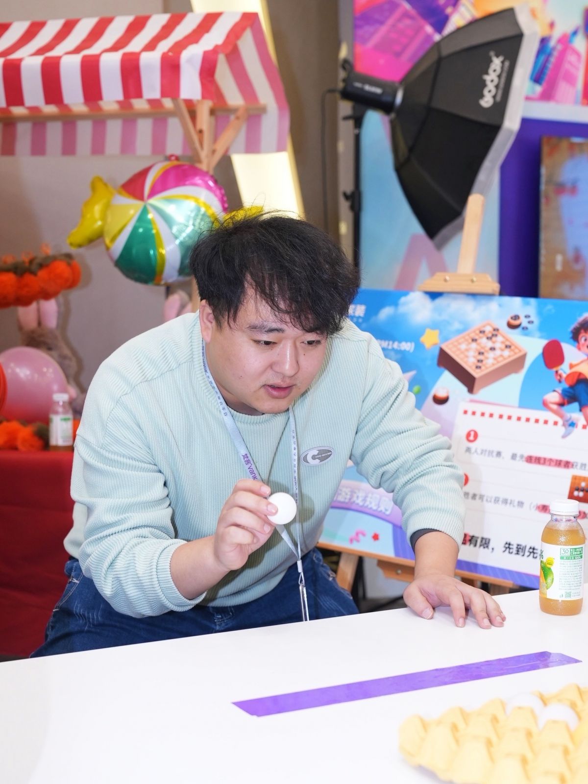玩乒乓球五子棋的小伙伴們真的是需要一顆強大的心臟,因為小白球一不小心就會彈出場外。雙方隊員依次排開輪流擲球,要穩準狠的將乒乓球彈入雞蛋托內,并且要連成五子。開始挑戰吧!