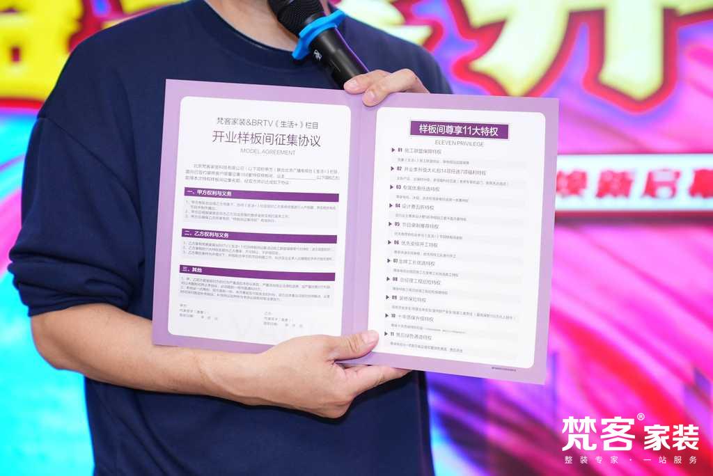 梵客家裝連年入選北京廣播電視臺(tái)《生活+》施工聯(lián)盟單位,簽約業(yè)主可收到《生活+》施工聯(lián)盟協(xié)議,為裝修多了一層保障,同時(shí)還有機(jī)會(huì)參加樣板間征集,尊享11大特權(quán)。