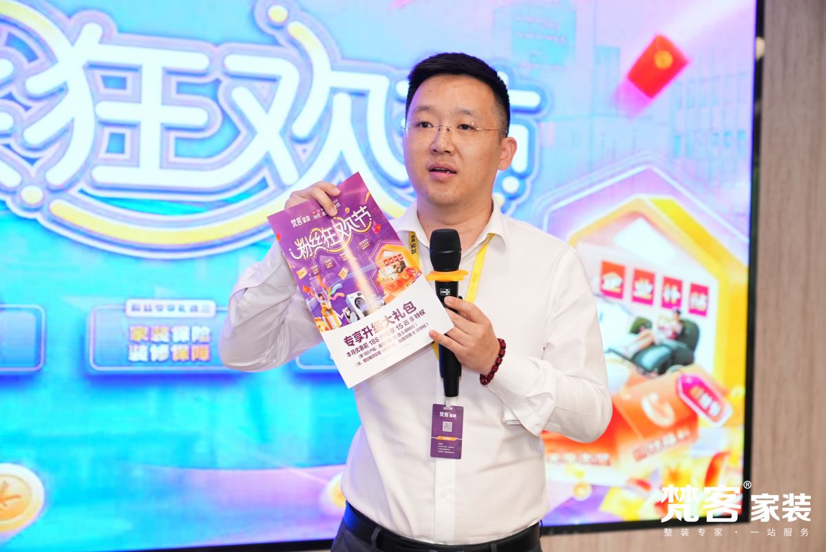 梵客家裝奧體中心店負責人劉佳星向大家發布了活動特惠規則,有狂歡基金、鉅惠豪禮、超值讓利、免單大獎、特權禮包等,將寵粉力度推到最高級別。