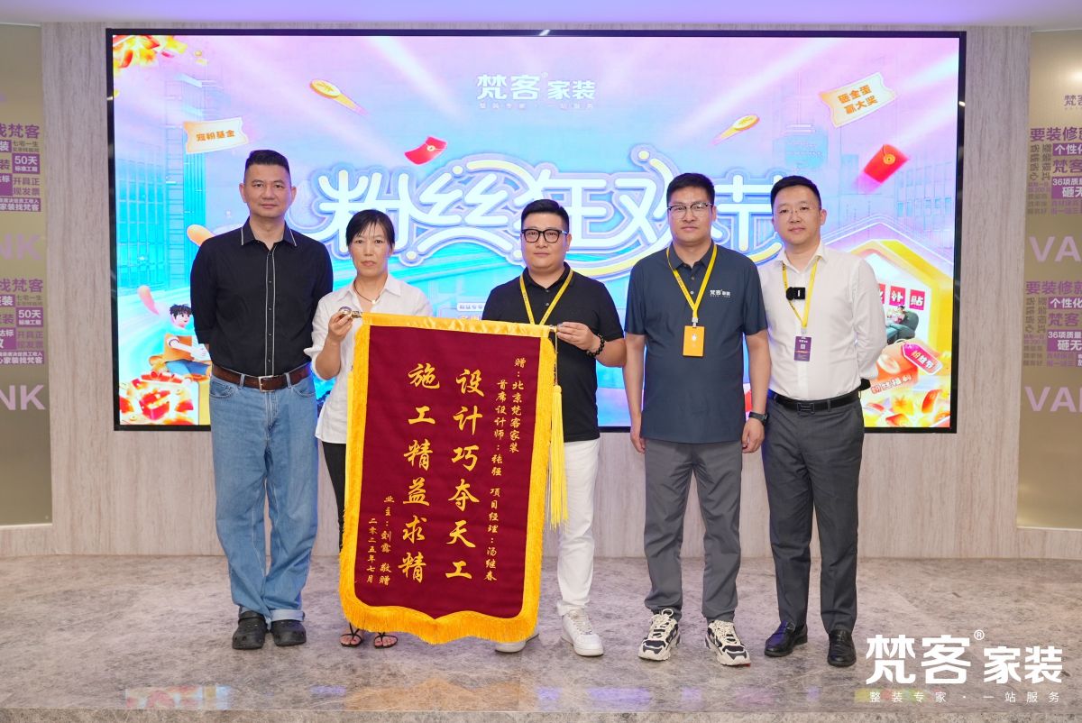 已經裝修好的業主朋友專程送來錦旗,大家對梵客的服務、產品贊口不絕。梵客家裝成立十八年,榮獲“最受消費者信賴的家裝品牌”稱號,深得京城百姓信任。“設計巧奪天工,施工精益求精”,每句贊美都是對梵客的肯定與信任,同時也激勵著梵客夯實服務、深耕專業的決心。