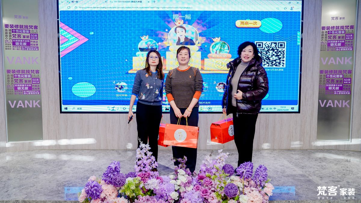 梵客的小伙伴們?yōu)橛訕I(yè)主朋友的到來已為大廳換上新裝,精致的甜品更是飄香誘人,硬核禮品區(qū)也呈現(xiàn)出梵客家裝的滿滿誠意,看看喜提大獎(jiǎng)花落誰家。