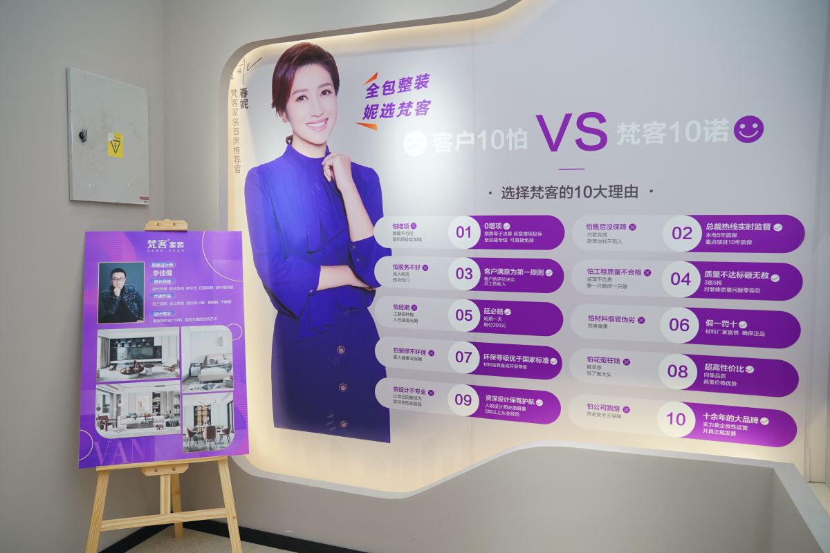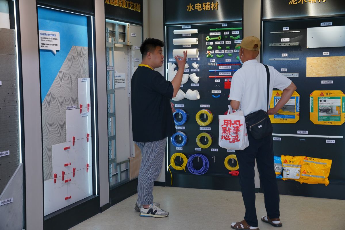 業主朋友可以在這里一站式選購主材、輔材,了解梵客的工藝展區,看德標整裝3.0工藝,以及薄貼工藝、雙層板吊頂工藝、墻面涂飾工藝、新砌隔墻工藝、強弱電工藝、廚衛水電工藝等,還有設計師專業講解,幫助業主更好理解,裝修更放心。