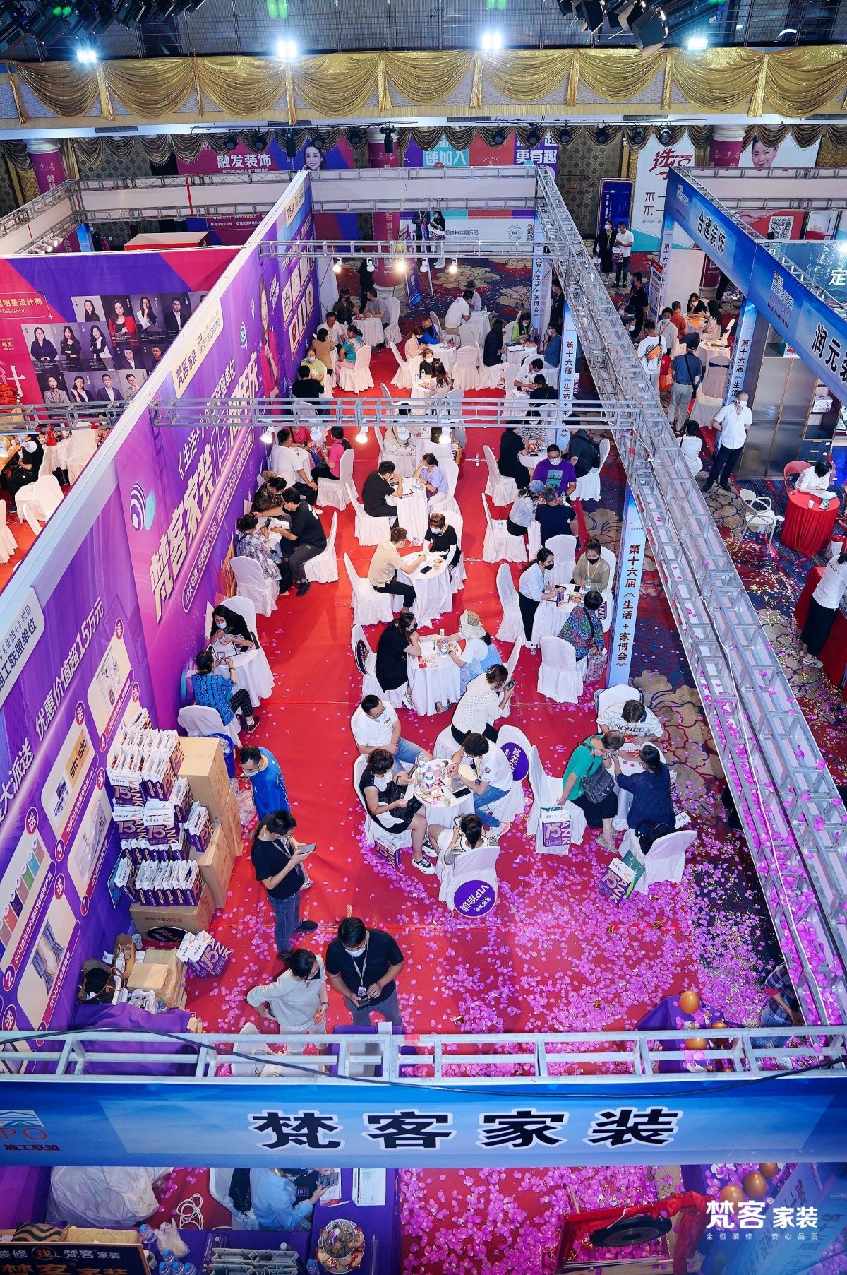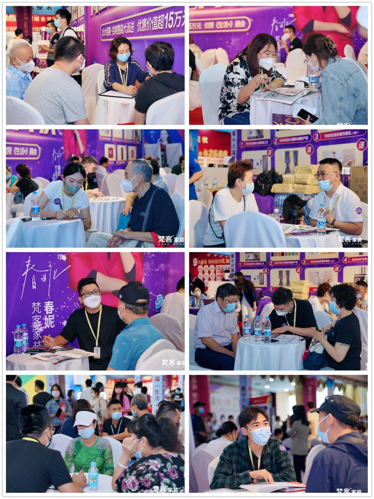 此次家博會,梵客家裝展位龐大,縱向排開,并以梵客企業色紫色與中國紅為裝飾色,有紫氣東來、喜慶吉祥,鼓舞勇氣的寓意,耀眼醒目,場面之大再次體現了企業的雄厚實力。
