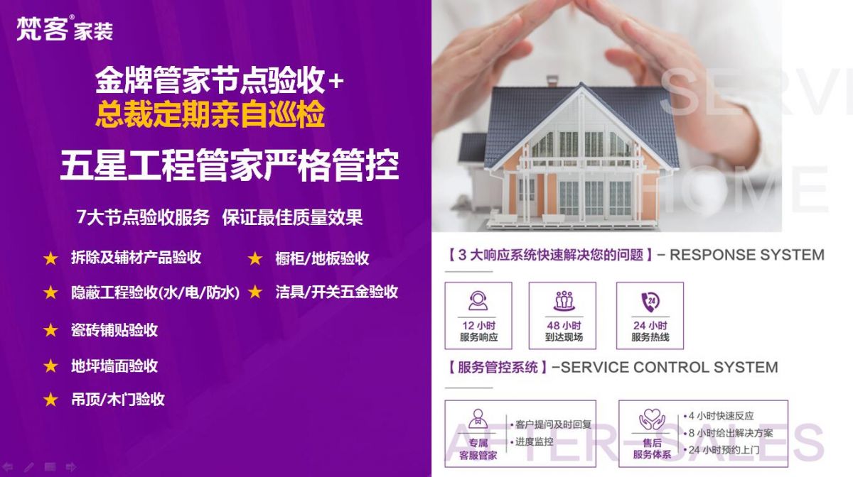梵客家裝真正為用戶提供一站式家裝解決方案,同時業內首創提出第八代人性化拎包整裝理念,主推拎包整裝輕奢版整裝產品和智尊版整裝產品,引領整裝發展潮流。