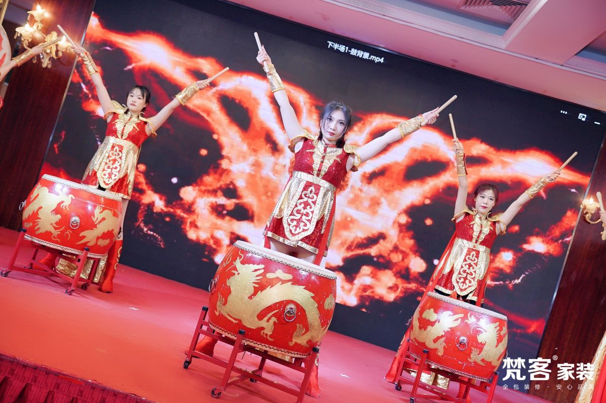 伴隨著激昂的戰(zhàn)鼓聲,星兔啟航,梵華似錦,2023梵客家裝營(yíng)銷大會(huì)&2022頒獎(jiǎng)盛典拉開帷幕,鏗鏘有力的龍騰鼓,激發(fā)了勇往直前的力量,梵客家裝全體員工攜手唱響2023年戰(zhàn)歌。