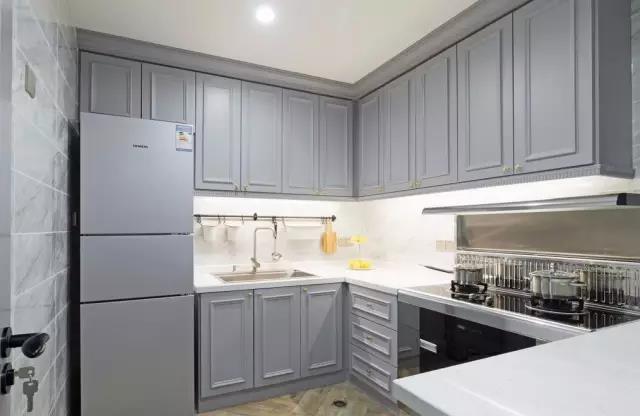 不要讓冰箱緊挨著灶臺,因為灶臺周圍溫暖較高,會影響冰箱制冷。老K見過很多家庭,覺得冰箱太大,放廚房突兀不美觀,所以做了嵌入式冰箱,把冰箱給“藏”了起來,但一定要注意散熱!!!周圍、頂部、底部都要留散熱空間!