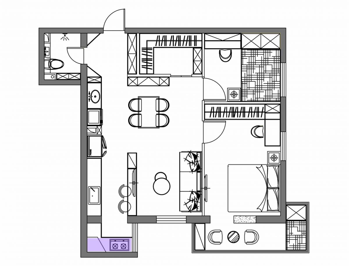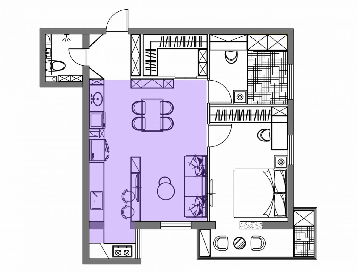將原房型次臥和廚房的一墻之隔打通,形成西廚、客廳、餐廳為一體的開放式大格局,視野更通透。