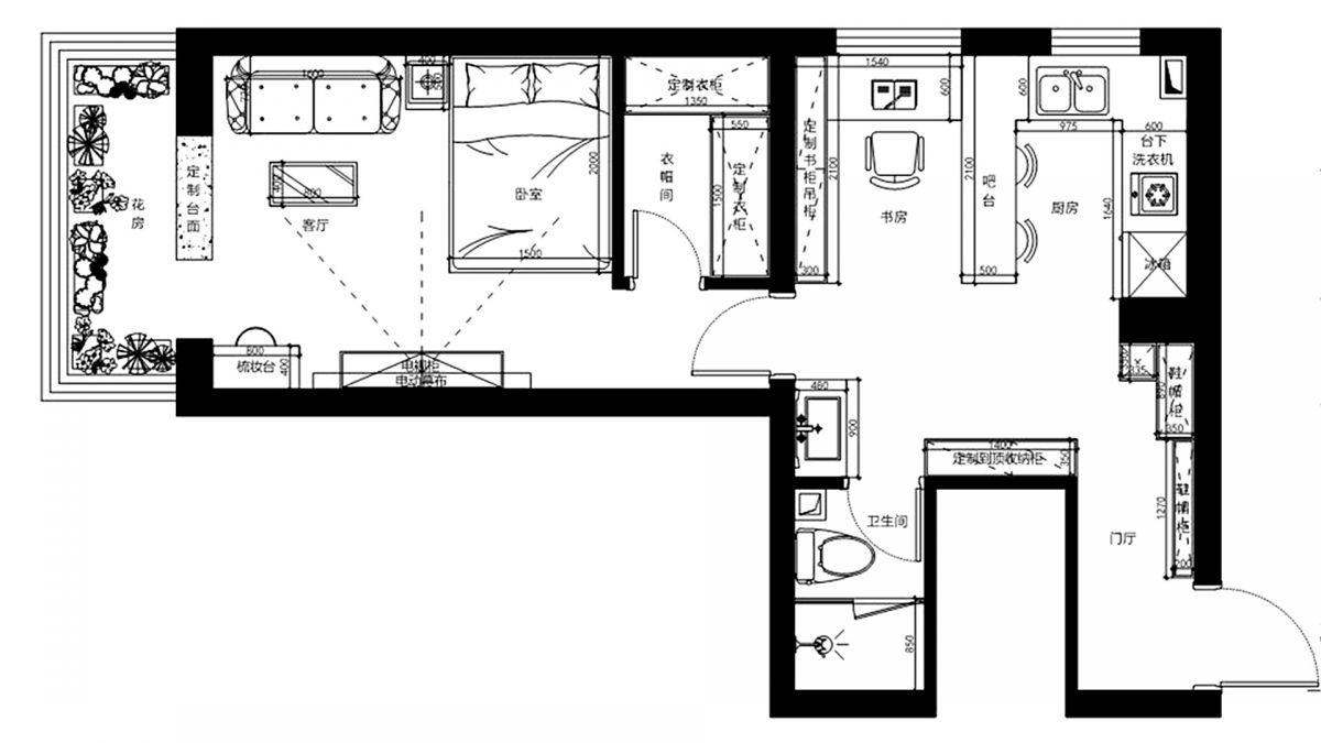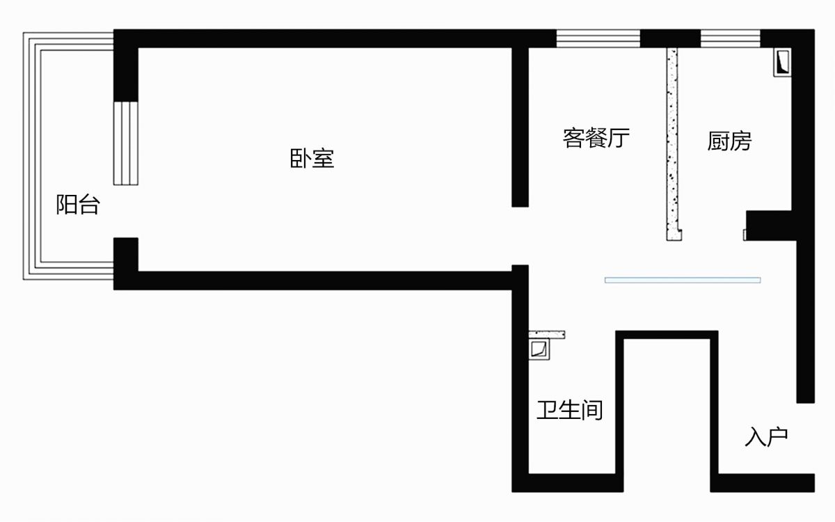 改造后,滿足了業(yè)主想要的所有功能區(qū),空間利用率大大提升。從原始平面圖 ↑ 和平面布置圖 ↓ 的對比,即可看出變化。