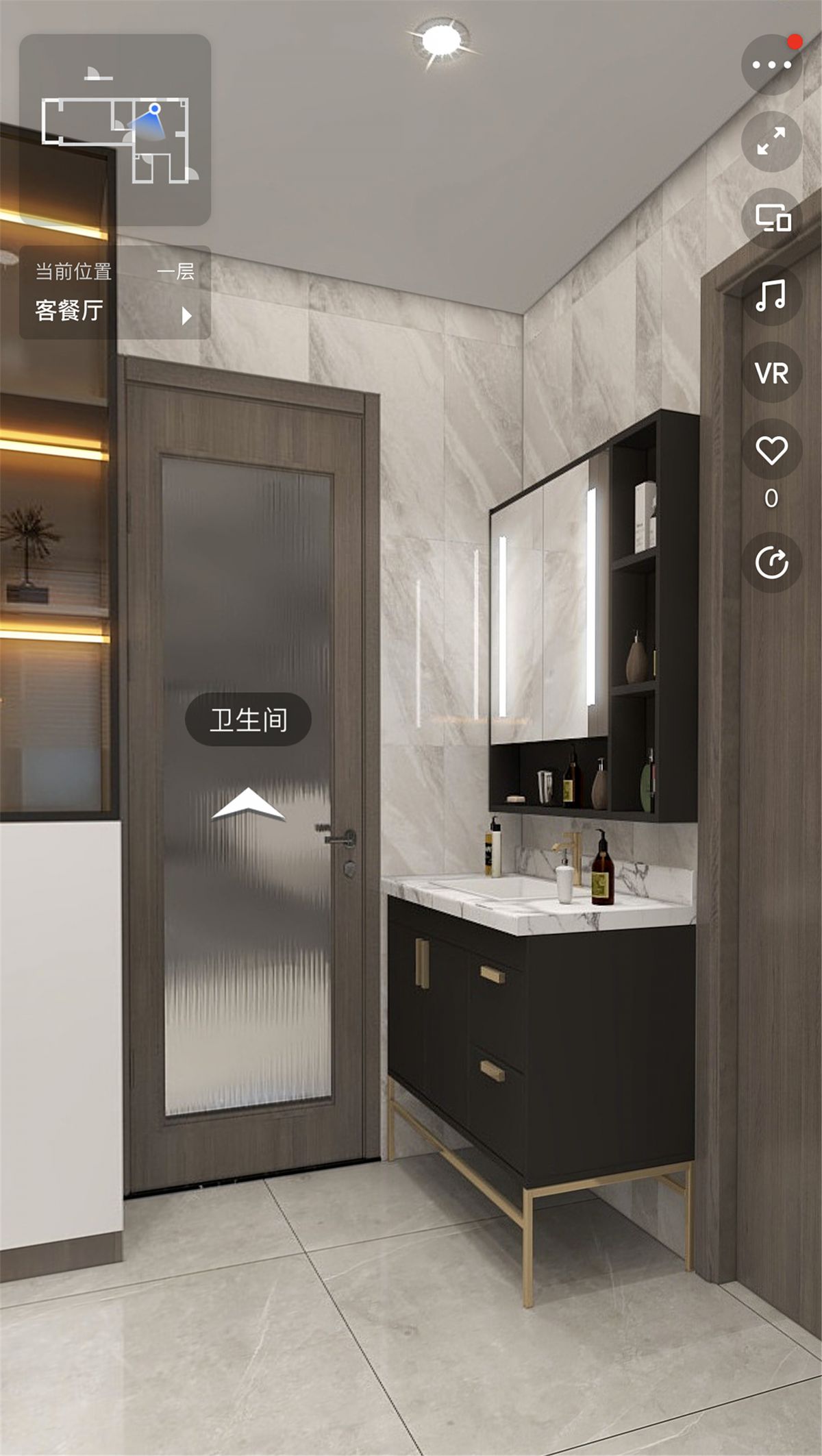 干區(qū),衛(wèi)生間面積較小,做了干濕分區(qū)。將門口的空位利用起來設(shè)計洗漱臺,提升空間美觀度,使用起來也更方便。