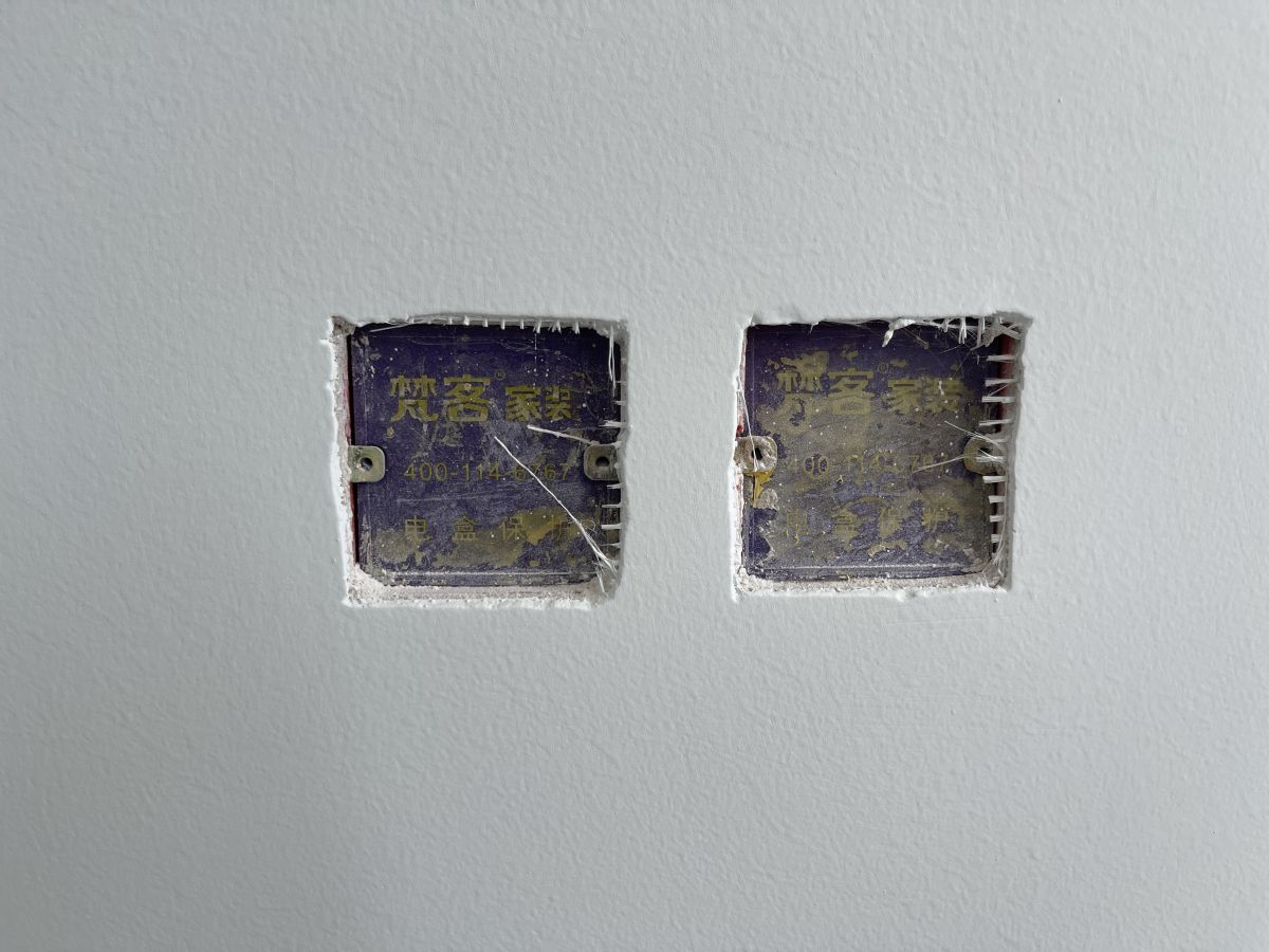 ↓ 墻面貼著水電標(biāo)識貼,警示墻內(nèi)是水電管線,避免后期安裝櫥柜、打眼、開孔時出現(xiàn)安全隱患。