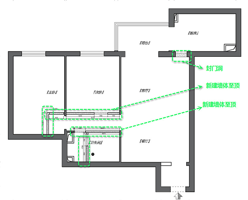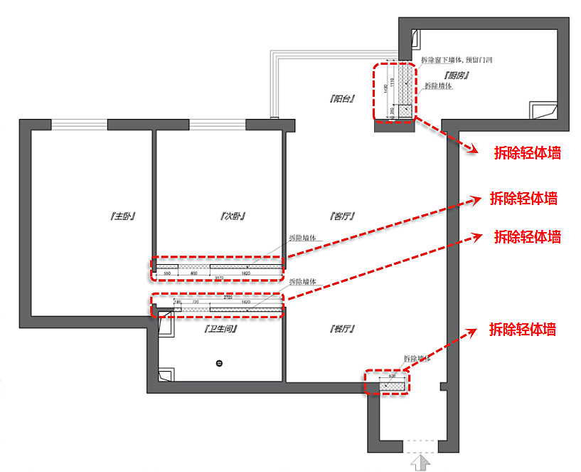 次臥門改動時,需要新建墻體。考慮到承重問題,一般新建墻體建議做輕質隔墻,用比較輕質的材料。新建墻體外側在抹水泥前要加掛鐵絲網,以增加墻體和外面貼瓷磚的穩固性,避免新建輕體墻出現開裂、抹灰層出現脫落等現象。