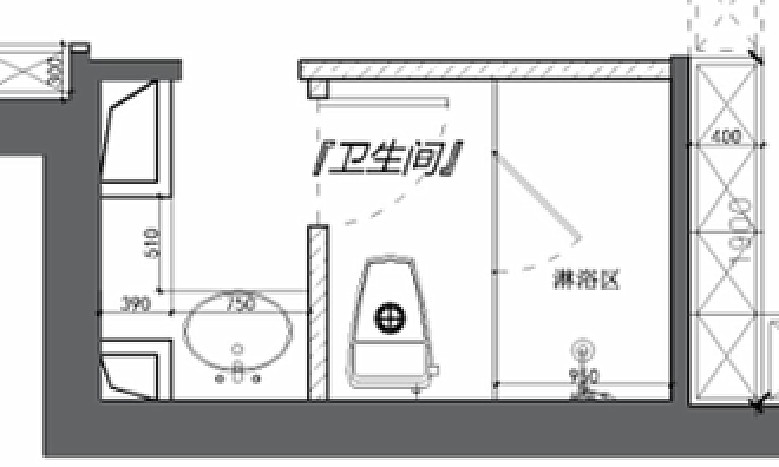 衛生間干濕分離:原結構中,衛生間的空間相對較大,但是功能布局不合理,洗手盆,坐便,淋浴區,洗衣機擺放無序,且無干濕分區。通過增加墻體隔斷,將洗手盆獨立出來,作為干區。坐便和淋浴區之間使用玻璃隔斷,再次分區,達到三分離的劃分,在提升使用率的同時,也可兼顧多人同時使用的便利。