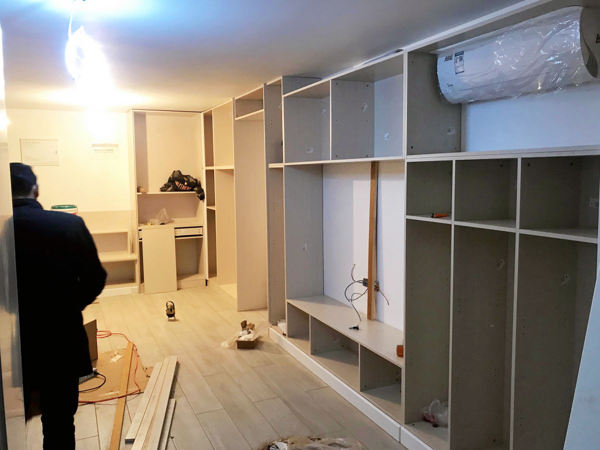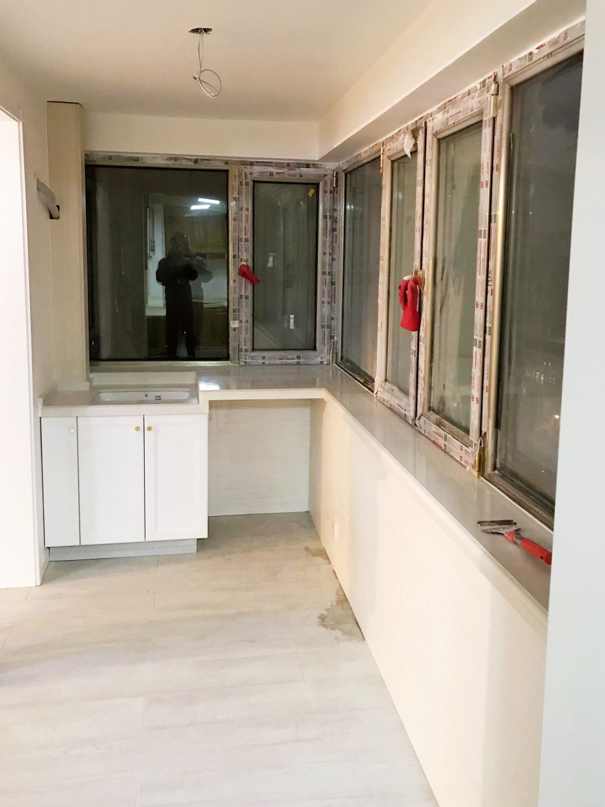 白老師經過現場實地測量,初步確定改造方案。第一輪溝通就出了3套設計方案,初步確定改造內容。后期溝通中反復推敲細節,拿捏尺寸,最終確定施工方案。從最初見面到定稿,一共設計了3稿,只用了15天。